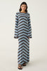 Effortlessly striking, this maxi knit dress is crafted from breathable natural fibres for a soft, lightweight feel, perfect for warmer days. Featuring elegant funnel sleeves and contrast chevron stripe design. Designed with a relaxed, elongated silhouette, it offers both comfort and understated elegance.